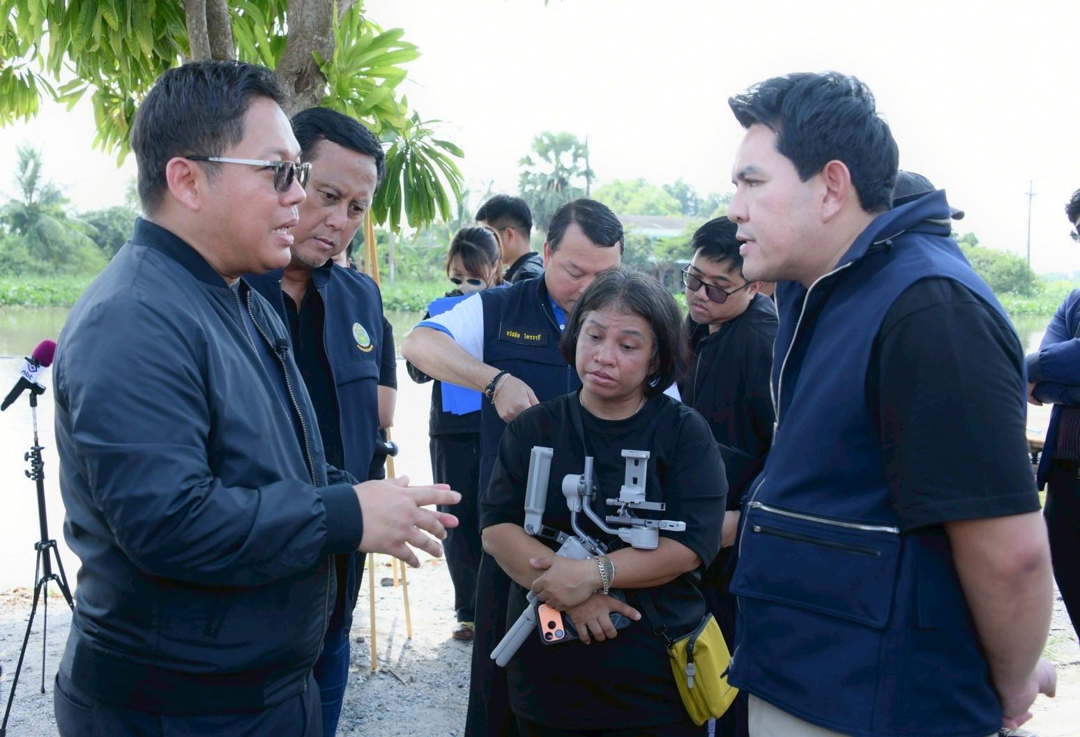 วันนี้ (9 พฤศจิกายน 2568) ที่วัดสุทธาวาส ตำบลคลองหลวงแพ่ง อำเภอเมืองฉะเชิงเทรา จังหวัดฉะเชิงเทรา นายสุรศักดิ์ พันธ์เจริญวรกุล รัฐมนตรีว่าการกระทรวงการอุดมศึกษา วิทยาศาสตร์ วิจัยและนวัตกรรม พลโท อดุลย์ บุญธรรมเจริญ รัฐมนตรีช่วยว่าการกระทรวงกลาโหม และคณะฯ เดินทางลงพื้นที่จังหวัดฉะเชิงเทรา เพื่อติดตามสถานการณ์น้ำลุ่มนเจ้าพระยาตอนล่างฝั่งตะวันออก และแนวทางการบริหารจัดการน้ำในพื้นที่ ซึ่งได้รับผลกระทบจากอิทธิพลของพายุ “คัลแมกี” โดยมี ดร.ธเนศร์ สมบูรณ์ ผู้อำนวยการสำนักบริหารจัดการน้ำและอุทกวิทยา นายชุติมันต์ สกุลพราหมณ์ ผู้อำนวยการสำนักงานชลประทานที่ 11 และผู้แทนจากหน่วยงานที่เกี่ยวข้อง ร่วมลงพื้นที่ และให้ข้อมูลในส่วนที่เกี่ยวข้อง