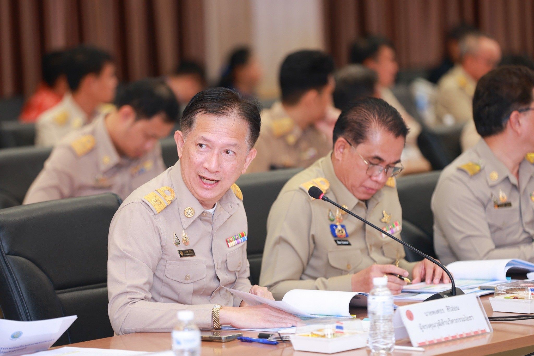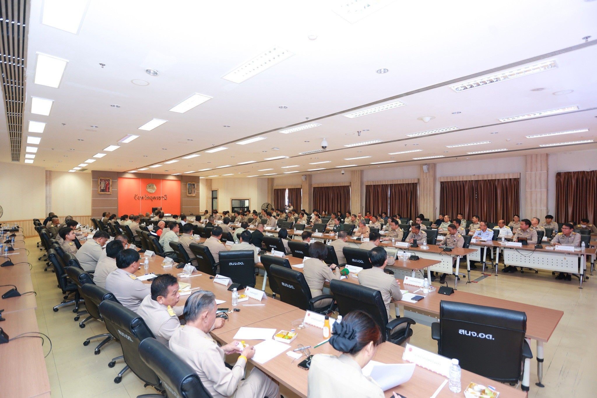 วันพฤหัสบดีที่ 11 กันยายน พ.ศ. 2568 เวลา 09.30 น. พลอากาศเอก จอม รุ่งสว่าง องคมนตรี รองประธานกรรมการติดตามและขับเคลื่อนโครงการอันเนื่องมาจากพระราชดำริ พร้อมอนุกรรมการติดตามและขับเคลื่อนโครงการอันเนื่องมาจากพระราชดำริพื้นที่ภาคตะวันออกเฉียงเหนือ และที่ปรึกษาฯ เดินทางไปติดตามผลการดำเนินงานโครงการอันเนื่องมาจากพระราชดำริพื้นที่จังหวัดขอนแก่น โดยมี นางสุพร ตรีนรินทร์ เลขาธิการคณะกรรมการพิเศษเพื่อประสานงานโครงการอันเนื่องมาจากพระราชดำริ (สำนักงาน กปร.) นายพงศธร ศิริอ่อน ผู้ทรงคุณวุฒิด้านวิศวกรรมโยธา (ด้านสำรวจและหรือออกแบบ) นายสิริพล รักษนาเวศ ผู้อำนวยการกองพัฒนาแหล่งน้ำขนาดกลาง นายสิงหา ผจงกิจการ รองผู้อำนวยการสำนักงานชลประทานที่ 5 นายชุมพาสน์ ชุมอุระ ผู้อำนวยการสำนักงานก่อสร้างชลประทานขนาดกลางที่ 5 นายนรเศรษฐ์ ฤกษ์สงเคราะห์ ผู้อำนวยการโครงการชลประทานอุดรธานี นายศุภกรณ์ แก้วแกมแข ผู้อำนวยการโครงการก่อสร้าง สำนักงานชลประทานที่ 5 นางสาวจันทร์จิรา อักษรณรงค์ ผู้อำนวยการส่วนติดตามและประเมินผล กองประสานงานโครงการอันเนื่องมาจากพระราชดำริ ข้าราชการ เจ้าหน้าที่ และผู้แทนจากหน่วยงานที่เกี่ยวข้อง ร่วมประชุมติดตามและขับเคลื่อนการดำเนินงานโครงการอันเนื่องมาจากพระราชดำริ ในเขตพื้นที่จังหวัดอุดรธานี ณ ห้องประชุมกรมหลวงประจักษ์ศิลปาคม ชั้น 5 อาคาร 1 ศาลากลางจังหวัดอุดรธานี อำเภอเมืองอุดรธานี จังหวัดอุดรธานี